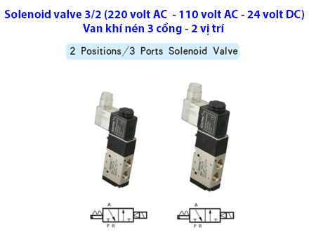 Van khí nén, 3 cổng, 2 vị trí (dùng điện điều khiển)